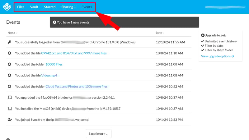 Mit Events sind einfach nur Aktionen gemeint, die in Ihrem Cloud-Speicher stattgefunden haben. Hier sehen Sie eine Übersicht der Logins, Uploads und mehr.