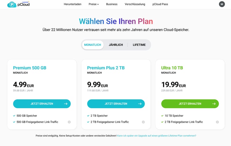 Übrigens: Es gibt auch ein paar Anbieter, die sogenannte Lifetime-Cloud-Speicher verkaufen. Hier zahlen Sie einmalig einen höheren Betrag und können den Speicherplatz danach dauerhaft nutzen. Rein rechnerisch amortisiert sich das nach ein paar Jahren, sodass Sie den Dienst im Vergleich zu klassischen Abos sozusagen „kostenlos“ weiternutzen können.