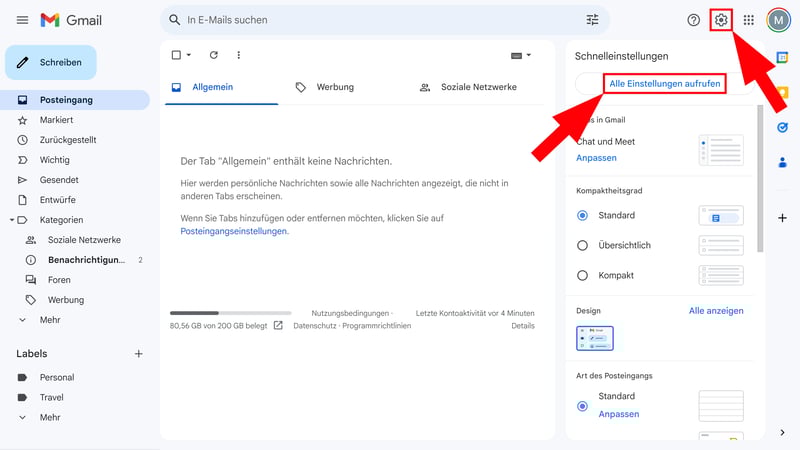 Öffnen Sie die Gmail-Einstellungen.
