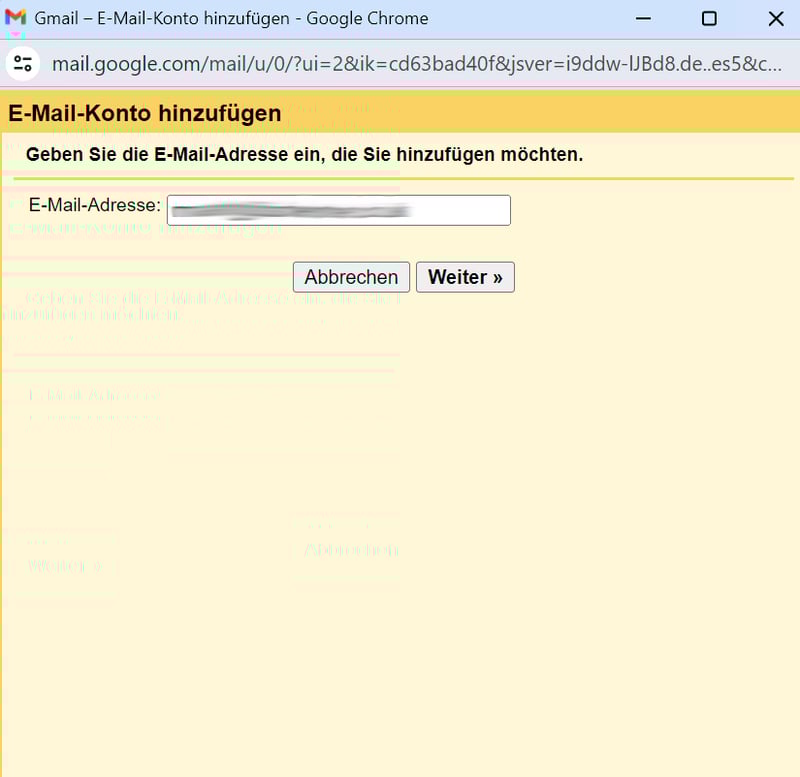 Geben Sie Ihre benutzerdefinierte E-Mail-Adresse ein und klicken Sie auf „Weiter“.