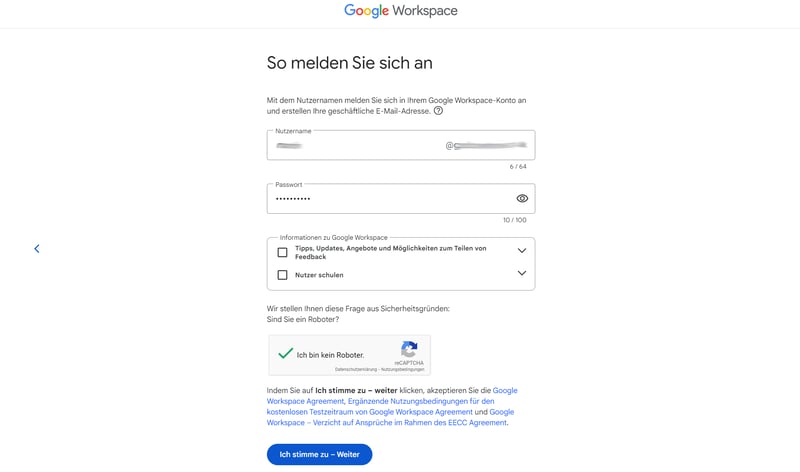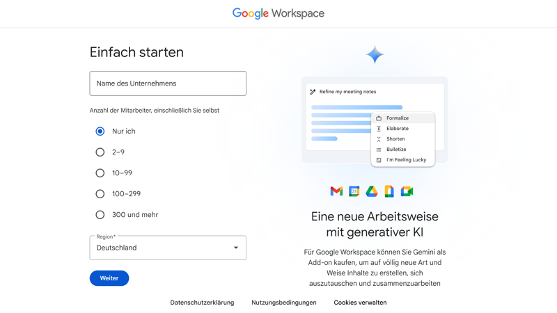 Erstellen Sie einen Account bei Google Workspace.