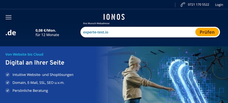 Wir zeigen anhand von IONOS*, wie Sie eine neue Domain mit .io-Endung registrieren.