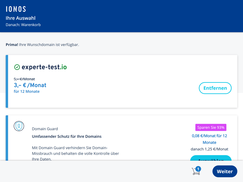 Sie können Zusatzoptionen wie den Domain Guard buchen.