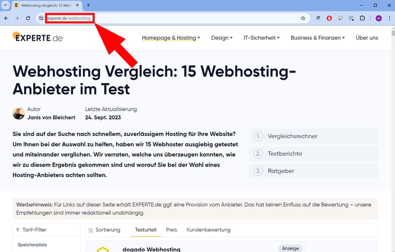 Der Domainname, also beispielsweise experte.de, ist der eindeutige Name einer Website. Er identifiziert den Server, auf dem die Website oder Ressource gehostet wird. - 4.