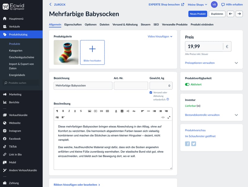 Im Hintergrund arbeitet mit Ecwid eine vollwertige E-Commerce-Plattform. Dadurch stehen deutlich mehr Verkaufsfunktionen zur Verfügung, als man bei einem so einfachen Baukasten erwarten würde.