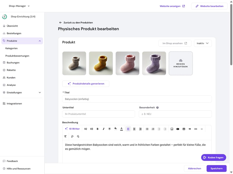 Leider geht die Kombination für uns nicht ganz auf: Website-Baukasten und Shop-Plattform wirken stellenweise wie zwei unterschiedliche Systeme, die nicht immer stimmig zusammenpassen.