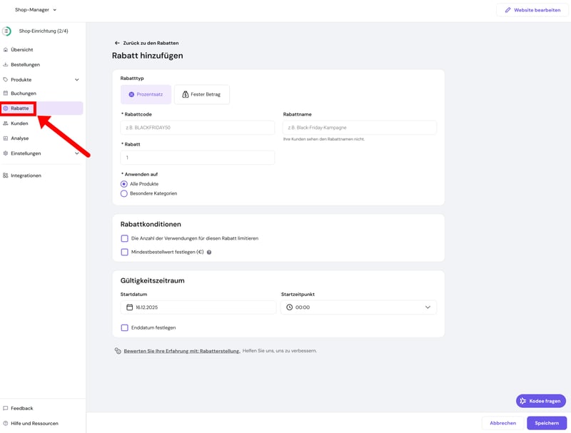 Bei den Rabatten achten wir auf zwei Bereiche: Sie sollten sowohl Rabattcodes als auch automatisch angewendete Rabatte erstellen können.