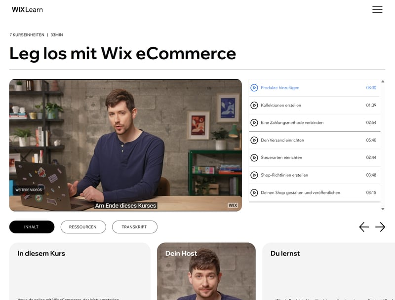 Wix hat eine eigene E-Learning-Plattform mit Webinaren.