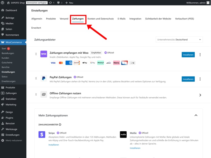 WooCommerce hat ein eigenes Payment-Gateway, das die wichtigsten Zahlungsmöglichkeiten unterstützt.