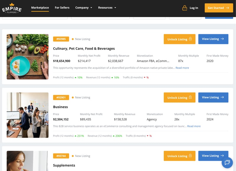 Bei Verkaufsplattformen wie Empire Flippers können Sie auch Shopify-Shops verkaufen.