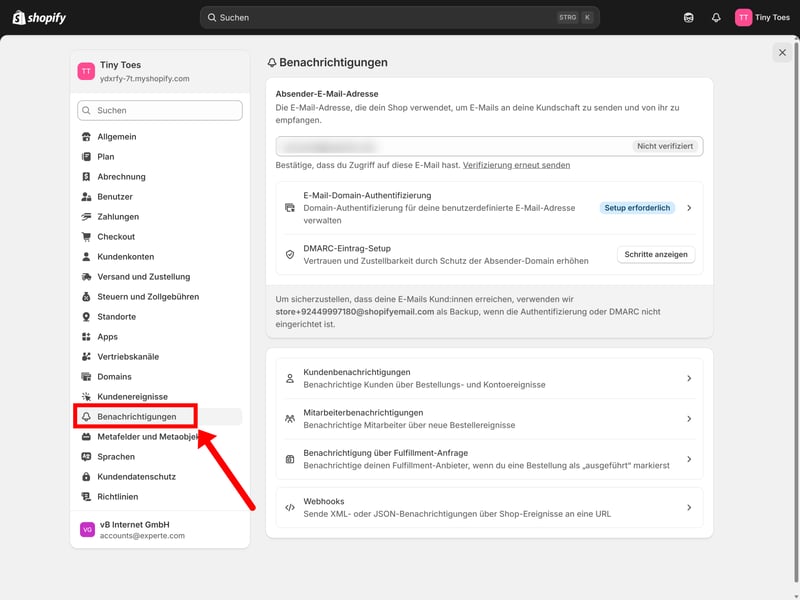 Schritt 2: Hinterlegen Sie in den Shop-Benachrichtigungen die Informationen des neuen Inhabers.