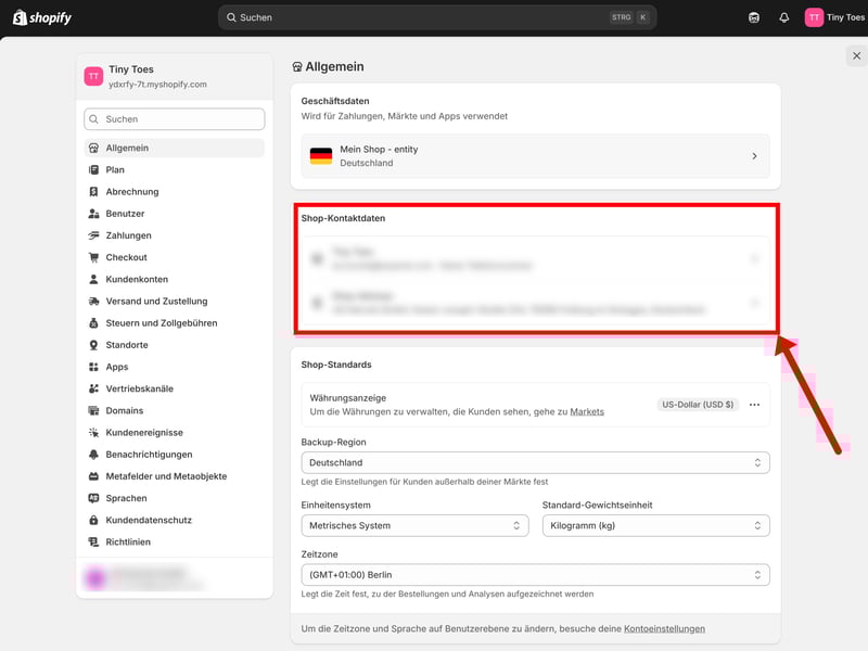 Schritt 3: Aktualisieren Sie die Kontaktdaten der benutzerdefinierten Domains, die mit Ihrem Shop verbunden sind.