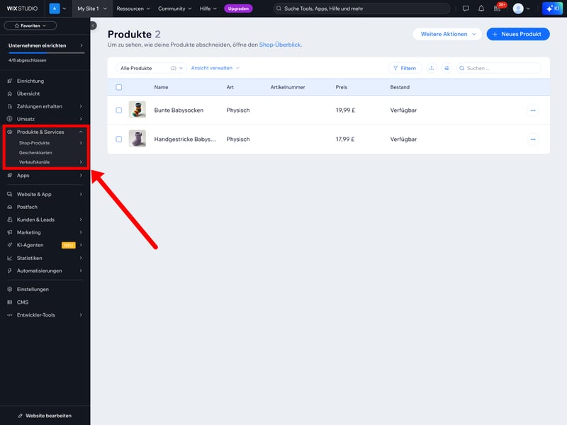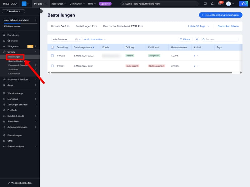 Das Wix-Dashboard: Ihre Shop-Verwaltungszentrale