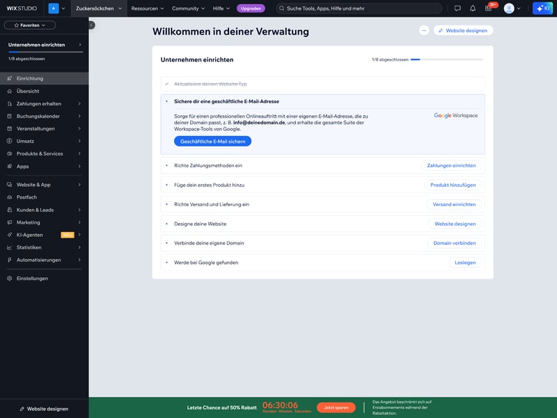 Eins ist Wix aber nicht: minimalistisch. Der Umfang an Funktionen, die Vielzahl an Entscheidungen (Editor oder Studio, KI oder manuell) und die vollgepackten, etwas schwerfälligen Dashboards bringen eine gewisse Komplexität mit sich, die gerade am Anfang Orientierung und etwas Geduld erfordert.