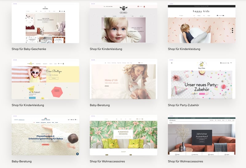 Wix bietet mehrere Tausend Designvorlagen, darunter rund 500 für Online-Shops. Die Designs sind modern und sind umfangreich personalisierbar.Viele Shop-Funktionen