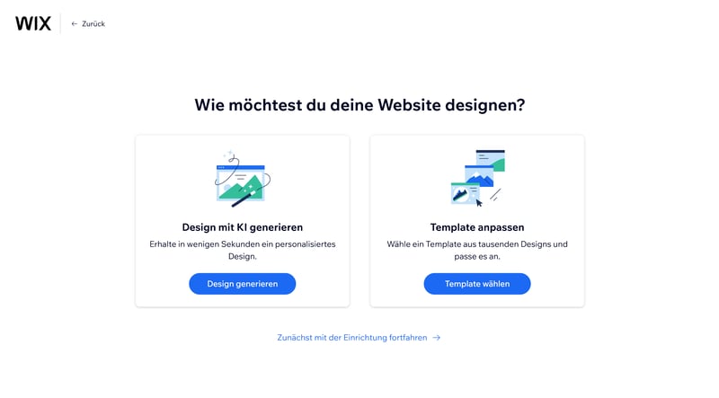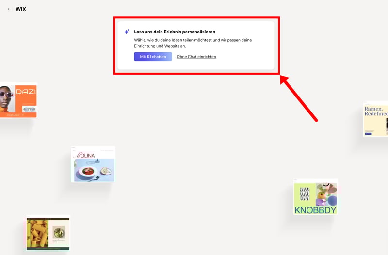 Wix begleitet Sie gerade zu Beginn mit vielen Pop-ups, Tooltips und KI-Vorschlägen. Dazu kommt, dass Sie mehrfach vor die Wahl gestellt werden: Neben der Grundsatzentscheidung zwischen Wix Editor und Wix Studio müssen Sie sich sowohl bei der Projekteinrichtung als auch bei der Seitengestaltung zwischen manueller Einrichtung und KI-gestützter Erstellung entscheiden.