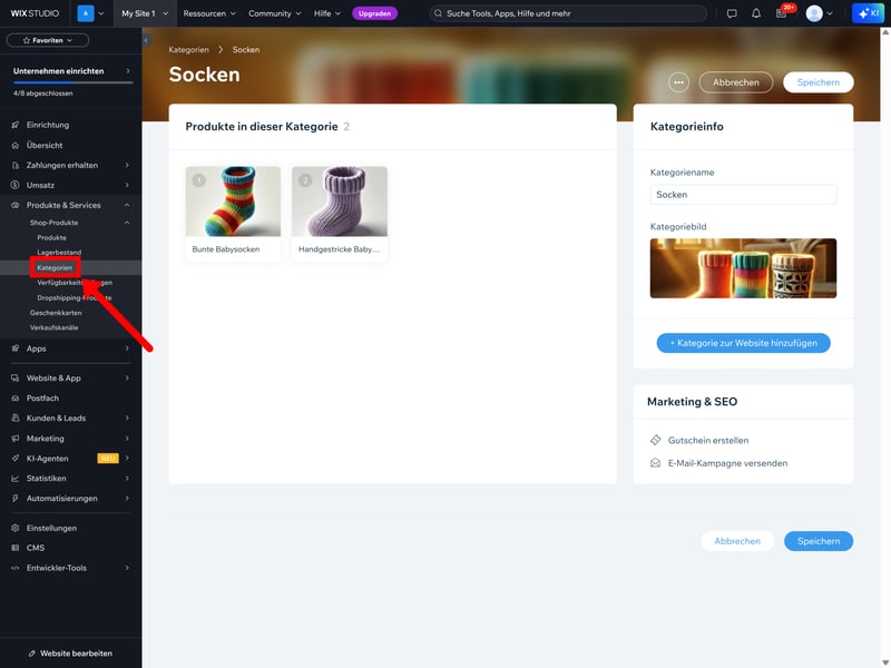 Die Zuständigkeiten sind logisch getrennt: Sie verwalten Produkte, Bestellungen und Zahlungen im Dashboard, das eigentliche Design Ihres Shops (Produktseiten, Kategorien, Startseite) erfolgt jedoch im Website-Editor. Hier zeigt sich der größte Unterschied zwischen dem Wix Editor und Wix Studio (mehr dazu im nächsten Kapitel).