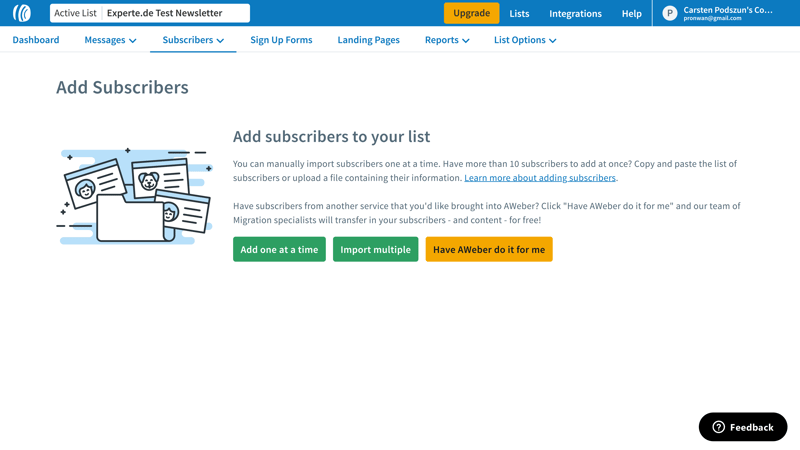 Insbesondere letztere Option ist interessant, denn AWeber bietet Ihnen die Möglichkeit, die Migration Ihrer Kontaktdaten für Sie zu übernehmen - kostenlos. Dies beinhaltet auch den Import Ihrer Daten von anderen Diensten wie Mailchimp, ActiveCampaign, MailerLite & Co.