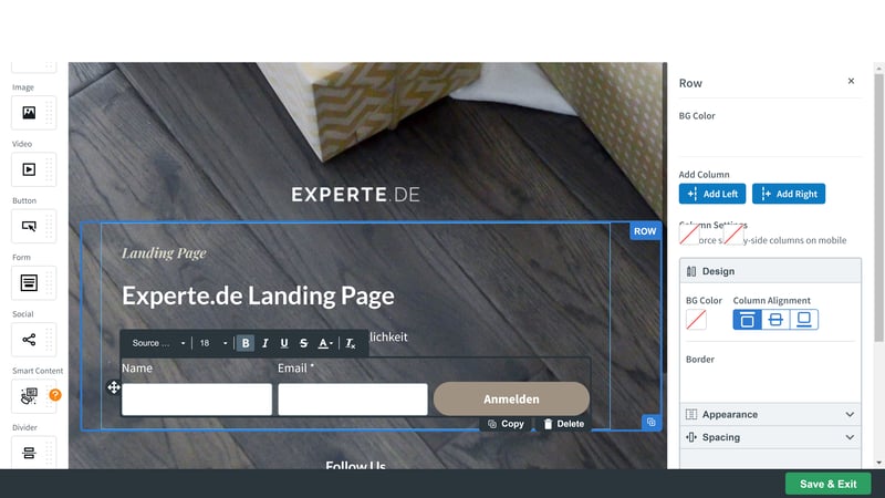 Der Landing-Page-Editor lässt sich intuitiv per Drag-and-Drop bedienen und erlaubt umfangreiche Anpassungen der vorhandenen Templates. Auch Einsteiger können hier mit nur wenigen Klicks professionelle Seiten erstellen. Besonders lobenswert ist auch, dass Sie Zugriff auf kostenlose Stock-Fotos haben, Sie sich beliebig einbinden lassen.