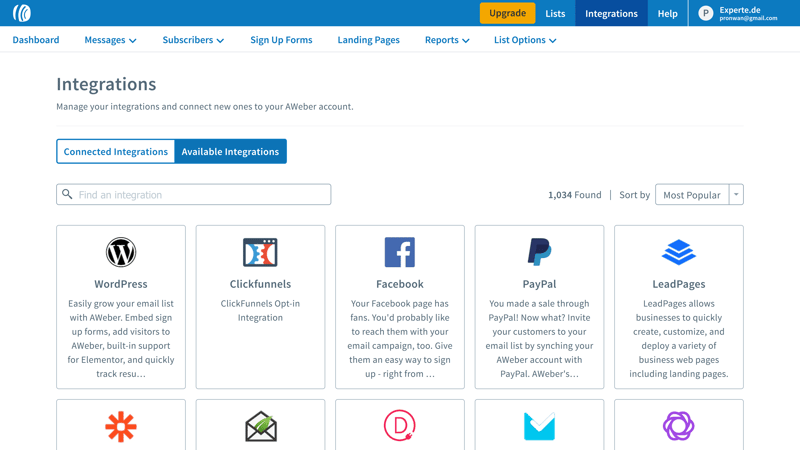 AWeber bietet über 1.000 Schnittstellen und Plugins