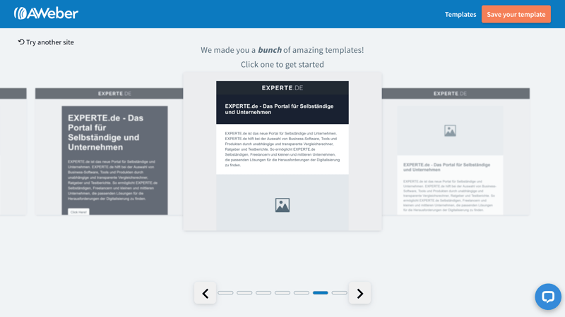 Eine Besonderheit bei AWeber ist die Smart-Template-Funktion. Hierüber haben Sie die Möglichkeit, die Farben, Bilder und Textelemente von Ihrer Homepage automatisch in ein Template übertragen zu lassen. Dazu muss lediglich die Webseite eingegeben werden. Den Rest erledigt das Smart-Template-Feature für Sie. Natürlich können Sie das Design anschließend beliebig anpassen.