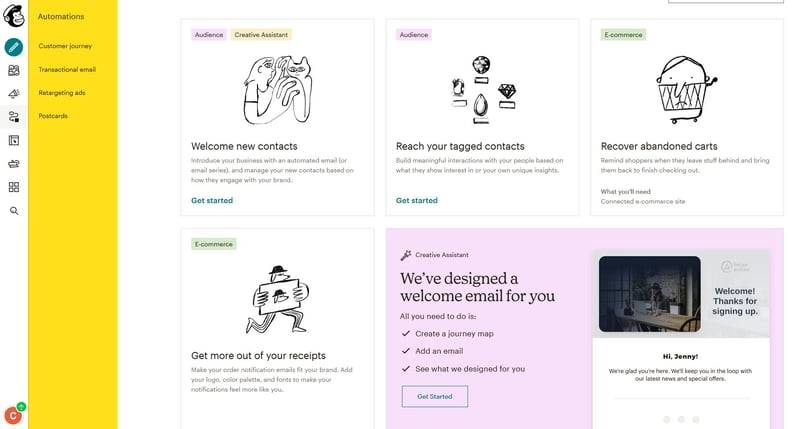 Im Bereich der Automationen schwächelte Mailchimp früher etwas, hat diese Mängel mittlerweile aber behoben. Heute stehen umfangreiche Automatisierungsmöglichkeiten und Vorlagen für verschiedene Einsatzbereiche zur Verfügung. Bemerkenswert ist, dass Sie automatisch Newsletter generieren können, die sich in Ihr bestehendes Design einfügen.