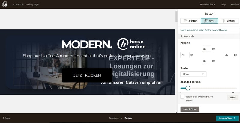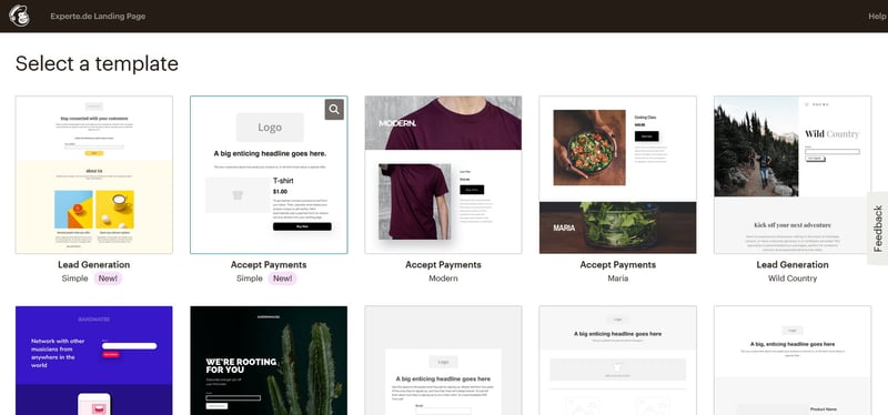 Für Landing-Pages stehen viele Designvorlagen zur Verfügung. Auch hier legt Mailchimp noch einmal eine Schippe obendrauf, wenn Sie sich für ein kostenpflichtiges Abonnement entscheiden.