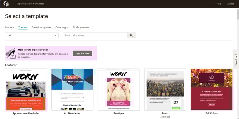 Klassische Kampagnen lassen sich sehr einfach erstellen. Dabei können Sie sowohl Klartext-Kampagnen als auch HTML-E-Mails von Grund auf sowie auf Basis vieler Templates kreieren. Die Auswahl an Vorlagen ist bei Mailchimp selbst im kostenlosen Paket sehr umfangreich.