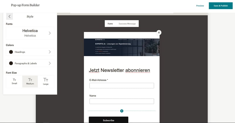 Der Formulareditor von Mailchimp ist sehr ausgereift und bietet Ihnen viele Individualisierungsmöglichkeiten. Neben klassischen Formularen in Form von Tabellen haben Sie auch die Möglichkeit, eingebettete HTML-Formulare sowie Pop-up-Formulare zu erstellen. Für Letztere steht Ihnen ein umfangreicher Editor inklusive zahlreicher Design-Templates zur Verfügung. In kostenpflichtigen Paketen ist die Auswahl an Vorlagen nochmals erweitert.