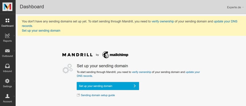 Transaktions-Mails können Sie darüber hinaus nicht so einfach über Tags ansprechen und per Editor entwerfen. Hier setzt Mailchimp auf die separate Entwickler-Plattform Mandrill, die über ein eigenes Dashboard angebunden ist. Um transaktionale E-Mails durch Ereignisse in Ihrem Shop auslösen zu lassen, müssen Sie Ihre Domain verknüpfen und die Mailchimp API (Schnittstelle) nutzen. Ohne Programmier- und englische Sprachkenntnisse ist das allerdings schwierig.