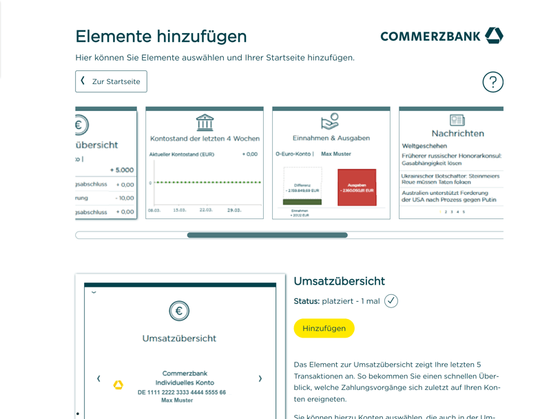 Die Commerzbank punktet mit einer unkomplizierten Kontoeröffnung und einer einfachen Bedienung – sowohl im Online-Portal als auch in der Smartphone-App. Die Benutzeroberfläche ist im Vergleich zu den Dashboards moderner Online-Banken etwas altmodisch, aber trotzdem recht intuitiv.