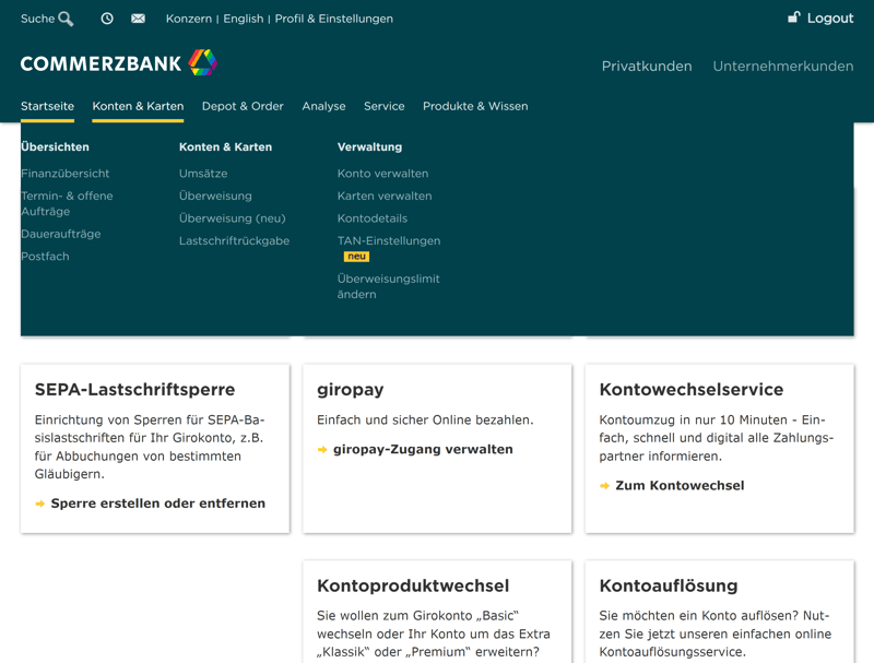 Das Online-Banking-Portal der Commerzbank ist intuitiv und modern, besonders für eine Filialbank.400 Filialen und 6.000 Geldautomaten