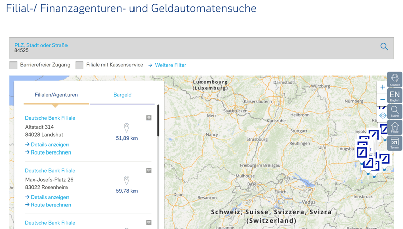 Finden Sie die Filialen oder Geldautomaten in Ihrer Nähe.