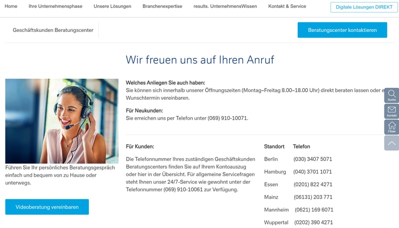 Trotzdem könnte die Deutsche Bank ihr Support-Angebot auf der Website etwas besser, zentraler und übersichtlicher einbinden.