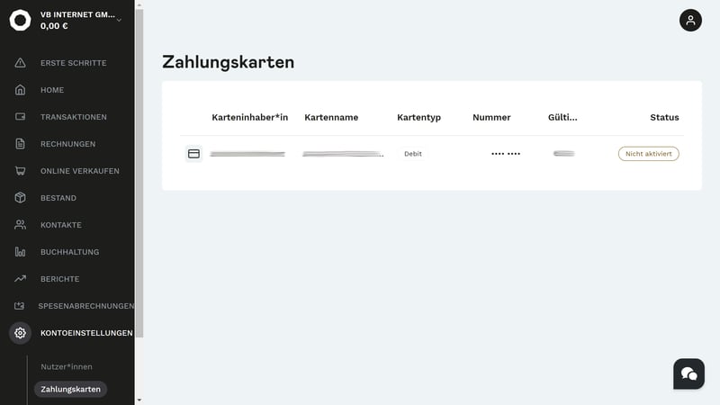 Alle Ihre Karten können Sie in der App und im Web-Portal unter Kontoeinstellungen > Zahlungskarten verwalten. Hier lassen sich Transaktionen einsehen und Limits anpassen.