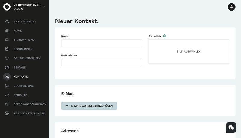 Praktisch ist die integrierte Kontaktverwaltung: Sie können Ihre Kontakte speichern, mitsamt Unternehmen, Kontaktbild, IBAN, E-Mail-Adressen und weiteren Daten. Dadurch sparen Sie später bei Überweisungen, Rechnungen, Spesenabrechnungen und anderen Funktionen Zeit, weil Sie Formulare nicht mehr manuell ausfüllen müssen.