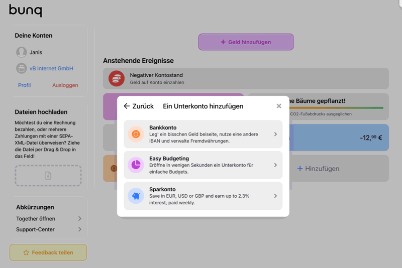 Welche Möglichkeiten für Unterkonten bietet bunq?