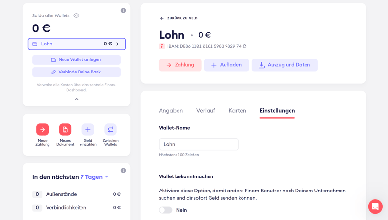 Finom: Bis zu 15 Unterkonten („Wallets“)