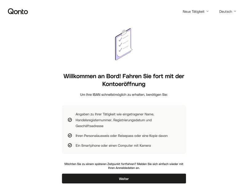 Die Kontoeröffnung ist bei Qonto durchdacht und gut strukturiert.