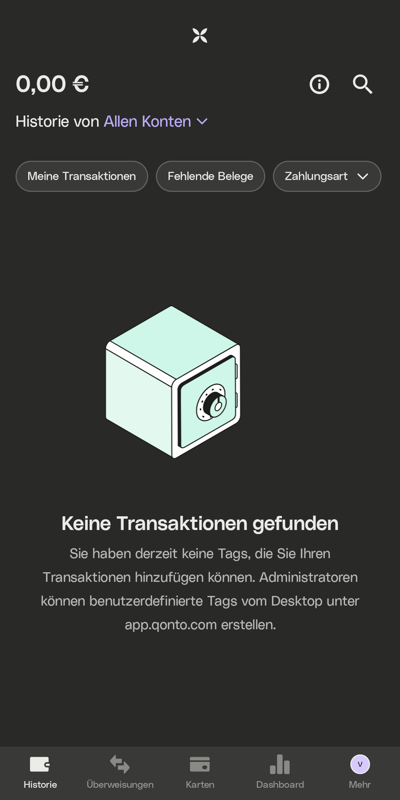 Inhaltlich könnte Qonto sein Dashboard noch feintunen. Eine etwas bessere Startseite mit Shortcuts zu Standard-Features wäre beispielsweise praktisch. Etwas nervig war zudem, dass wir regelmäßig ausgeloggt wurden. Dies ist ein gängiger Sicherheitsmechanismus im Online-Banking, doch bei Qonto traf uns der Logout oft unvorbereitet, denn eine Art Countdown gibt es nicht.