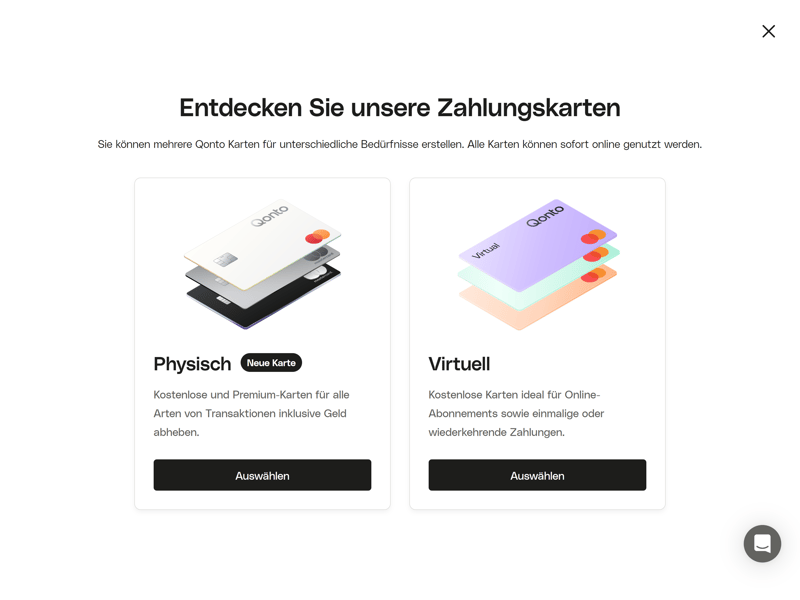 Qonto bietet eine Auswahl verschiedener physischer und virtueller Karten mit unterschiedlichen Konditionen.