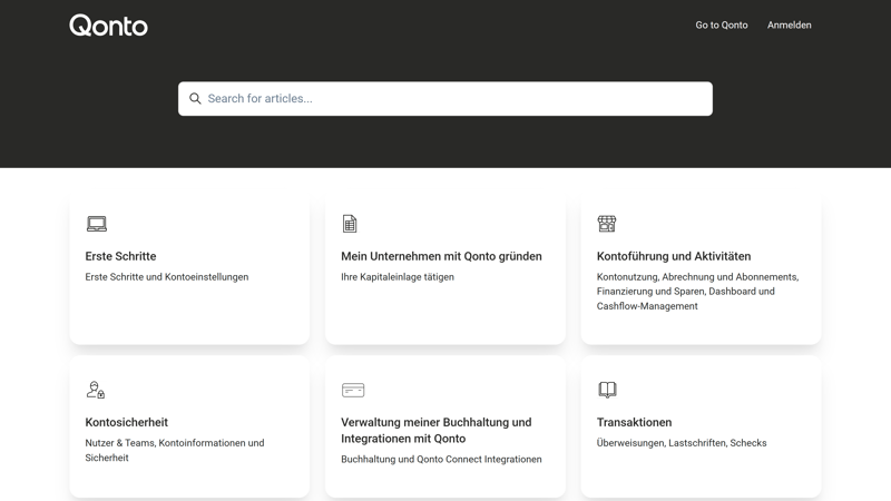 Sie suchen Antworten zu konkreten Qonto-Funktionen? Im Hilfecenter von Qonto finden Sie mehr als 200 Hilfeartikel, die in Kategorien wie „Erste Schritte“, „Kontosicherheit“ und „Transaktionen“ eingeteilt sind. Eine Suchfunktion gibt es natürlich auch. Die Artikel selbst sind zudem einfach geschrieben, sinnvoll gegliedert und mit Screenshots und Hyperlinks angereichert.
