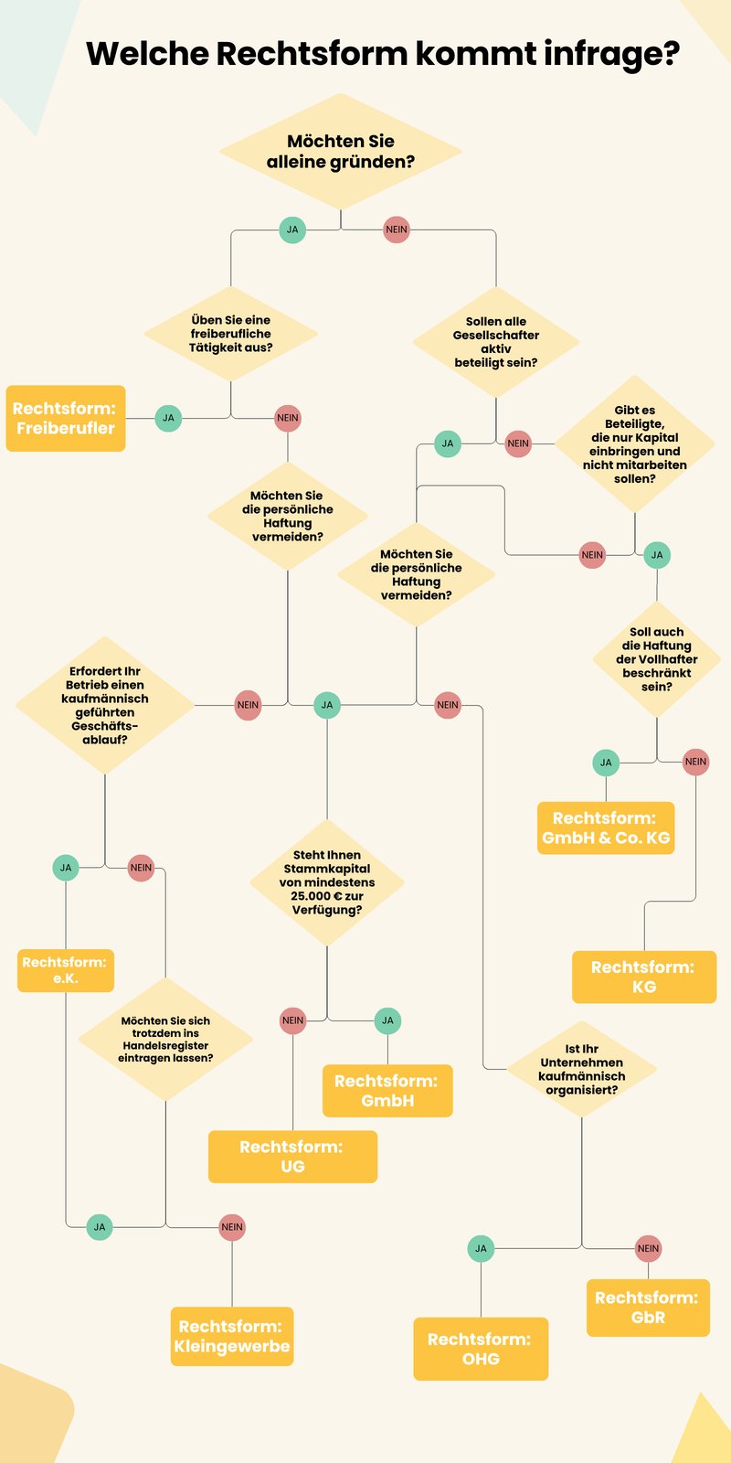 Sie sind sich noch unsicher, welche Rechtsform überhaupt die beste für Ihr Unterfangen ist? Unsere Auswahlhilfe unterstützt Sie bei der Entscheidung: