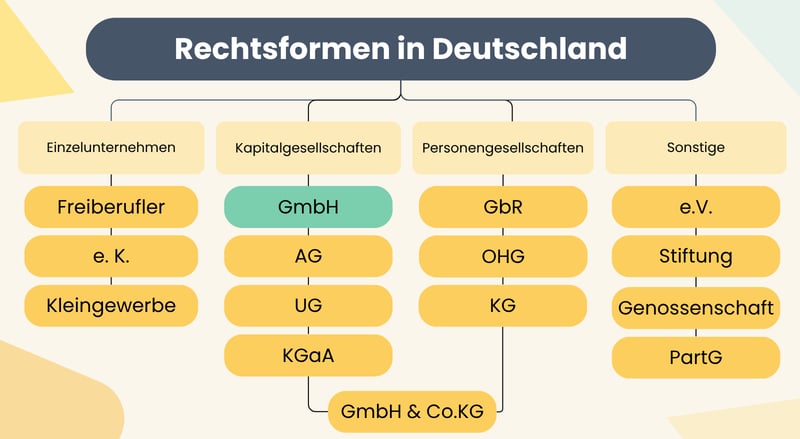 Die GmbH gehört zu den Kapitalgesellschaften. Das sind Unternehmensformen, bei denen das Unternehmen als eigene juristische Person auftritt. Im Gegensatz zu Personengesellschaften ist die Trennung zwischen Unternehmen und Gründern bei Kapitalgesellschaften rechtlich besonders klar geregelt.