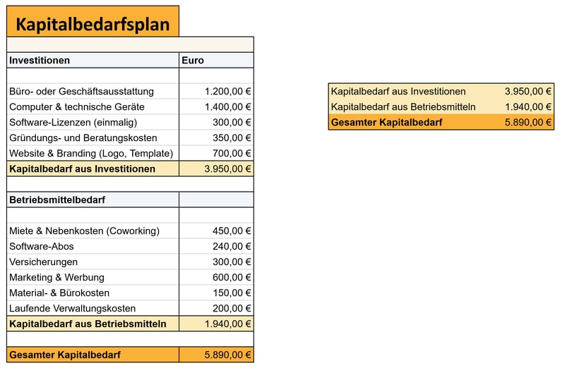 Beispiel eines einfachen Kapitalbedarfsplans.