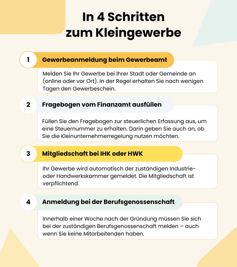 Schauen wir uns die einzelnen Etappen der Kleingewerbe-Gründung noch einmal im Detail an:
