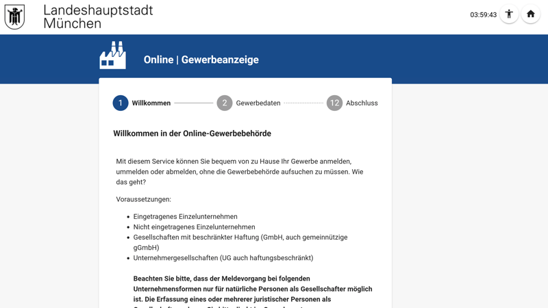 Viele Städte, darunter auch München, bieten mittlerweile Online-Formulare zur Gewerbeanmeldung.