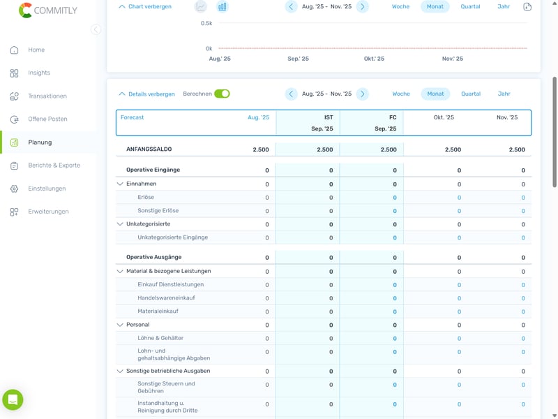 Viel einfacher: Planen Sie Ihre Liquidität mit einer guten Finanzplanungs-Software wie Commitly.