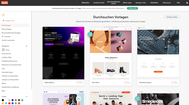 Dudas Agentur-Features sind eine spezielle Erwähnung wert: White-Label-Optionen, ein integriertes Kundenmanagement und andere Kollaborations-Tools erleichtern die Verwaltung von Kundenprojekten und mehreren Websites. Es ist sogar möglich, Kunden einen eigenen, vereinfachten Website-Editor zur Verfügung zu stellen.