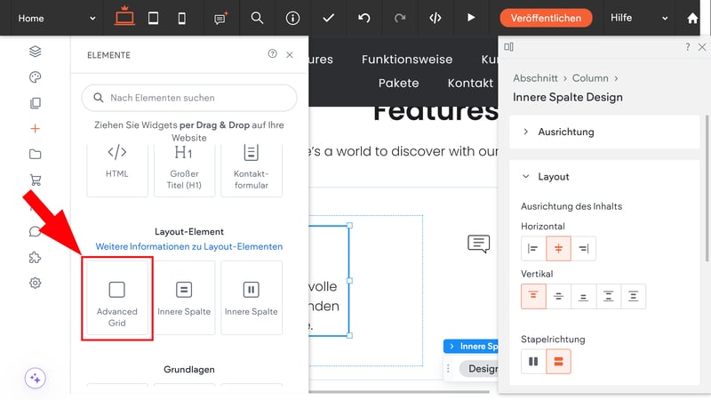Mit Dudas „Advanced Grid“-Funktion können Sie Elemente hinzufügen, die sich überlappen, und komplexe Layouts erstellen.